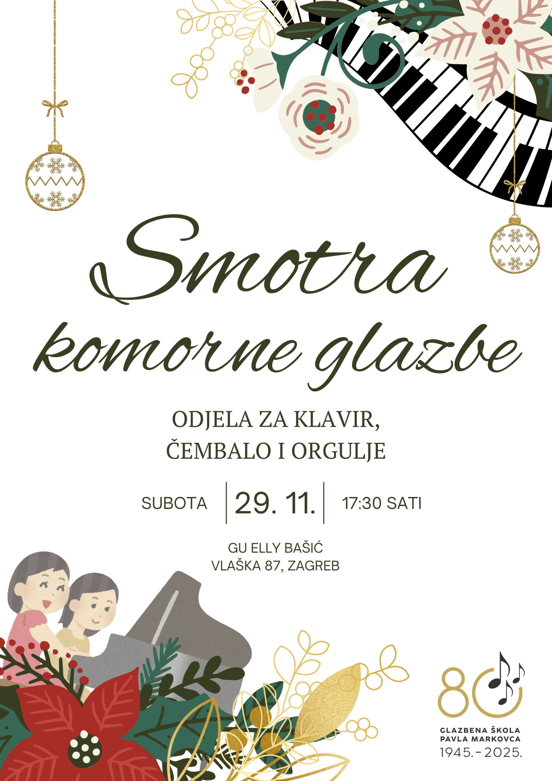 U subotu 29. studenog 2025. u velikoj dvorani Glazbenog učilišta Elly Bašić, Odjel za klavir, čembalo i orgulje Glazbene škole Pavla Markovca održao je svoju tradicionalnu Smotru komornih sastava.