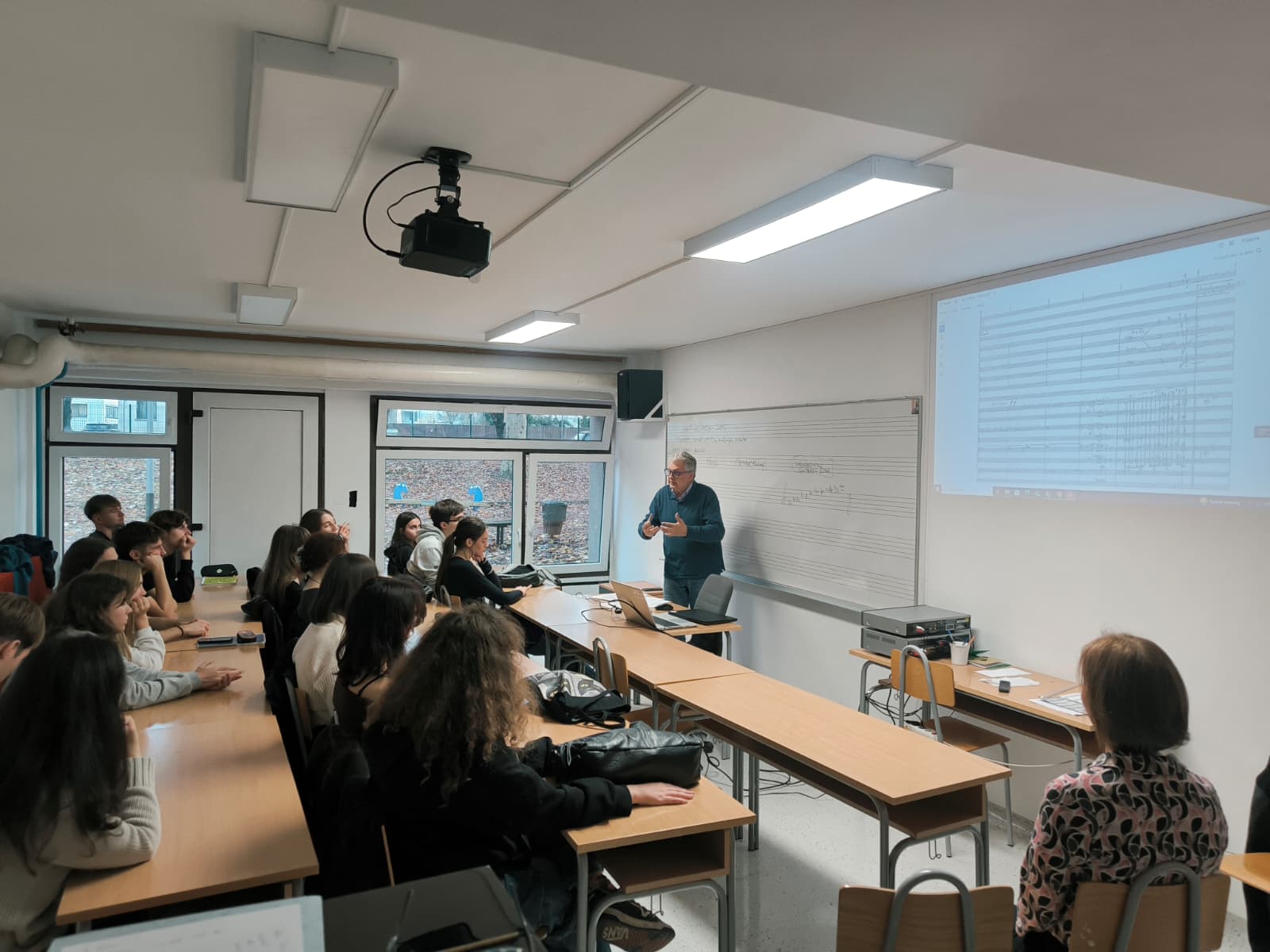 Učenici naše srednje škole prisustvovali su koncertu, a imali su priliku i prethodno poslušati predavanje te se upoznati sa skladbama na programu. Predavač je bio cijenjeni skladatelj, dirigent i profesor Berislav Šipuš koji je 11. studenog posjetio našu školu i učenicima 4. razreda na zanimljiv način predstavio Malecovu skladbu.